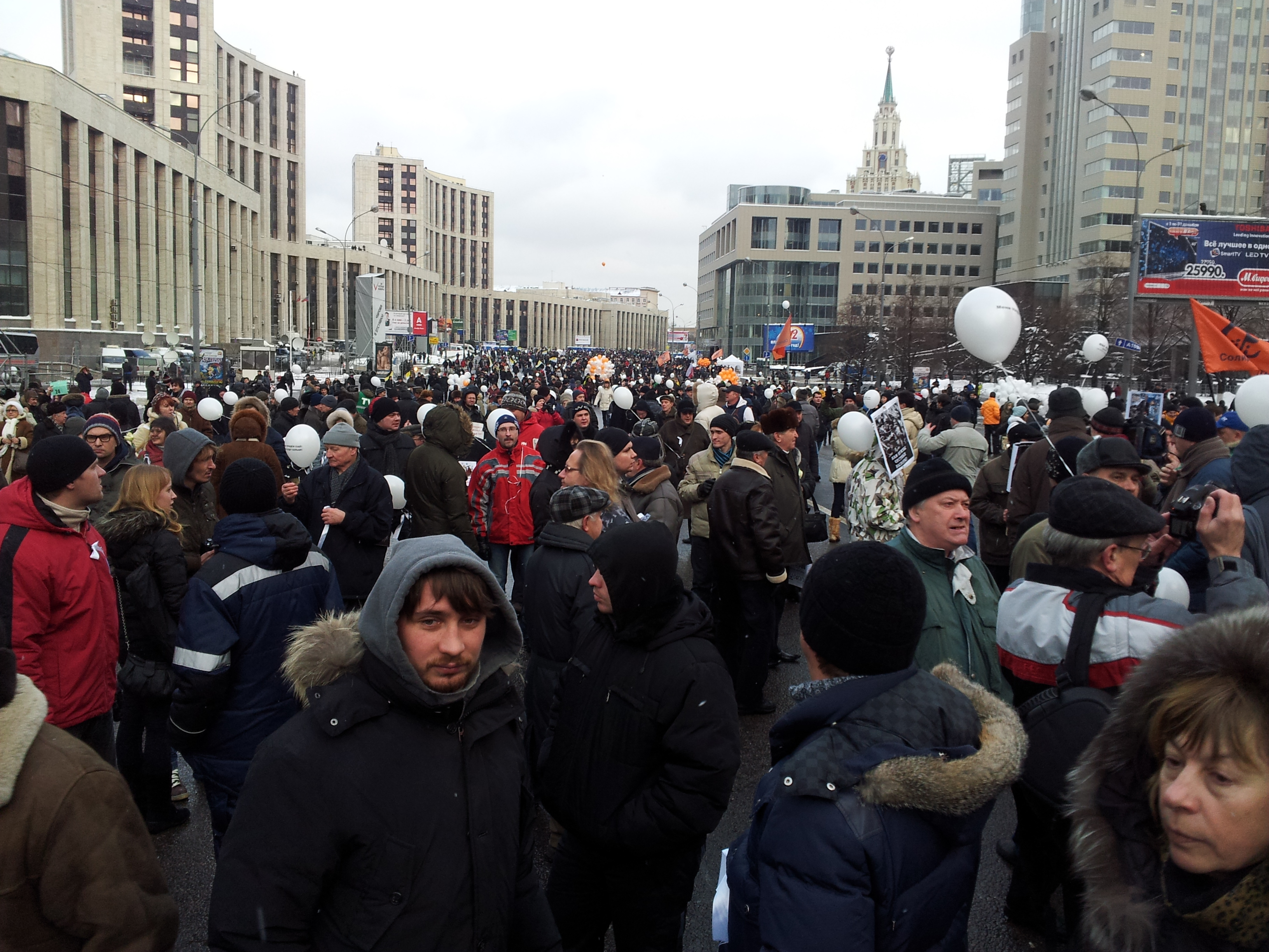 Огромная туча людей, разных возрастов и социального положения, взглядов, убеждений. Никто никому не наступал на ноги, все были предельно корректны и вежливы, старались не толкать рядом стоящего. Ну кто бы мог подумать, что в одном месте может собраться так много тех, кому претит вся эта свистопляска по федеральным каналам, тех, кому и в голову не придет смотреть бесконечные отупляющие Аншлаги или зомбирующие реалити шоу?